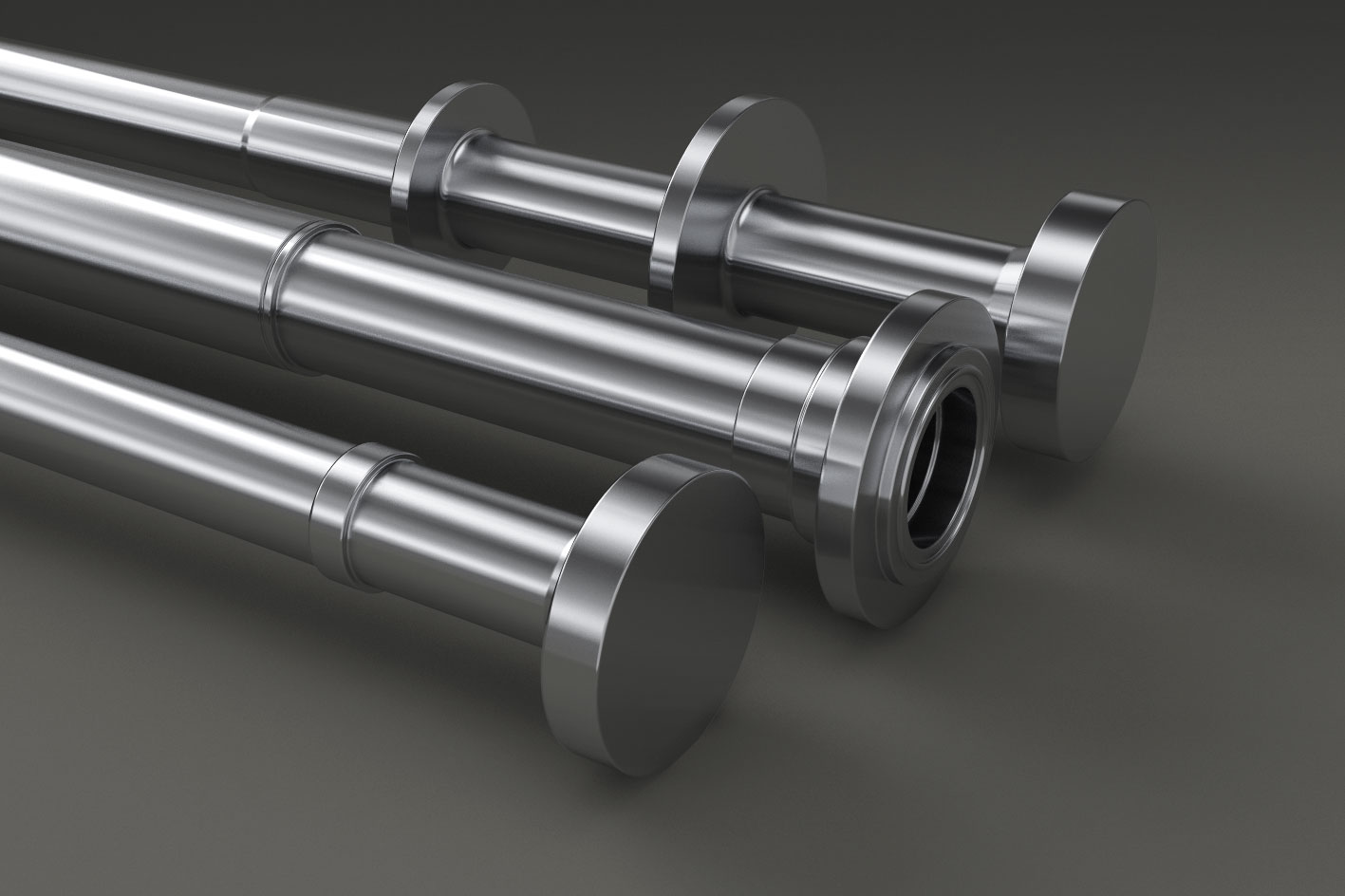 Abgesetzt geschmiedete Wellen aus Nickelbasislegierung oder Titan mit angeschmiedeten Flanschen, in roher, vor- oder fertigbearbeiteter Ausführung gemäß individuellen Zeichnungen und Spezifikationen.