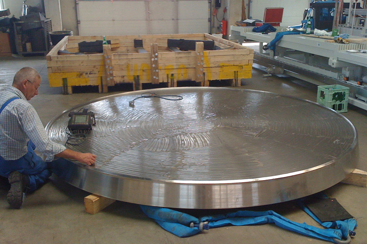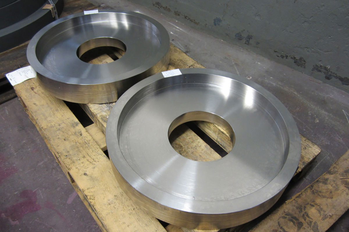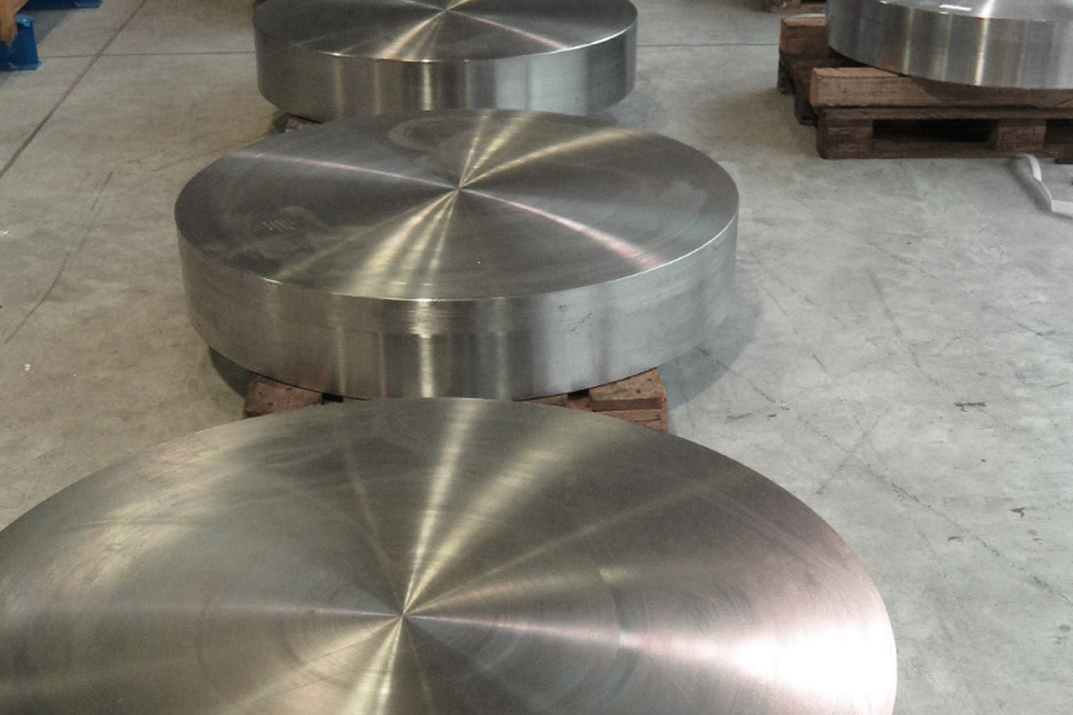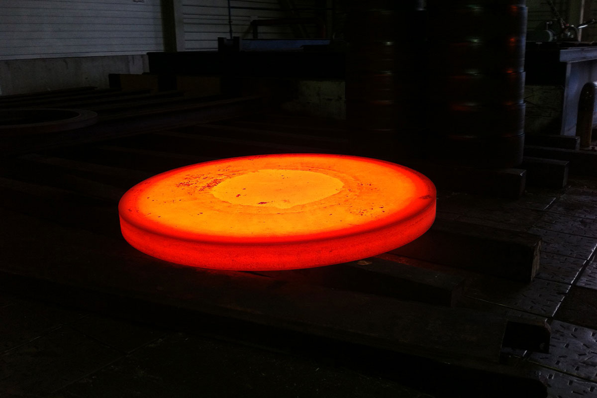 Freiformgeschmiedete Scheiben speziell in großen Dimensionen mit glatten oder profilierten Konturen in rohem, vorbearbeitetem oder komplett fertig bearbeitetem Zustand inklusive Bohrungen für Wärmetauscheranwendungen - mit unseren Technologien im Freiformschmieden ist alles möglich.