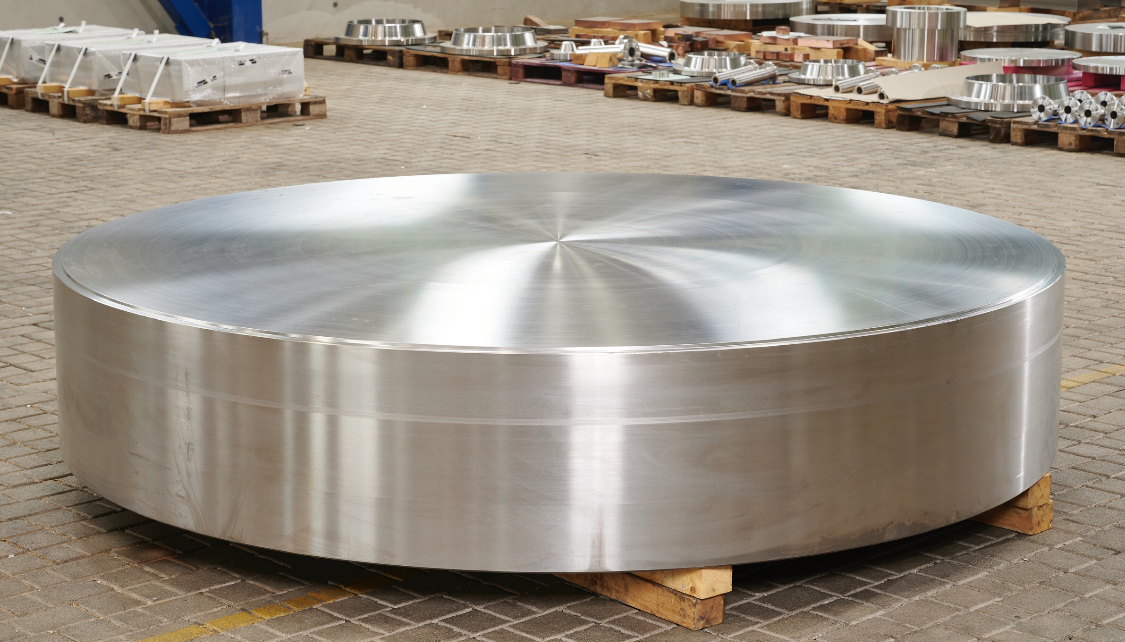 Rolf Kind hat diese große geschmiedete Wärmetauscher Rohrplatte aus Titan Grade 2 gefertigt. Die Scheibe hat ein Fertigmaß von 2.710 x 501 mm Dicke bei einem Gewicht von ca. 15.500 KG. Diese beeindruckende Rohrplatte wird später einmal das Herzstück eines sehr großen Wärmetauschers für ein FPSO deep-water gas and condensate Projekt in Asien. Von solchen Rohrplatten haben wir bereits einige geschmiedet und wir freuen uns auf die ganz großen.